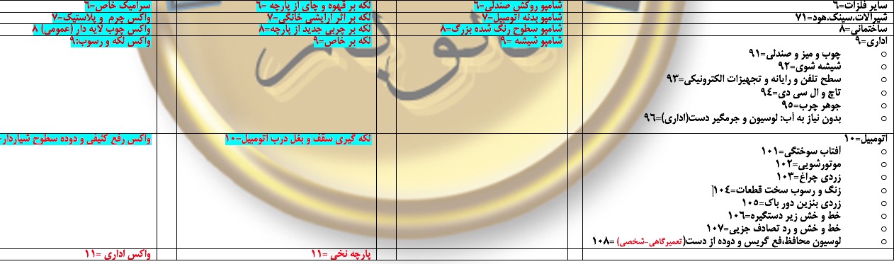 مایع ترمیم کننده کثیفی های ناشی از روغن و چربی و غبار و سولفات و زنگ زدگی و کدری و رسوب و ... در فلزات و پلاستیک و چوب و ... - و موتور شوی و رسوب زدا - ترکیبی – پایه آب – ph:8